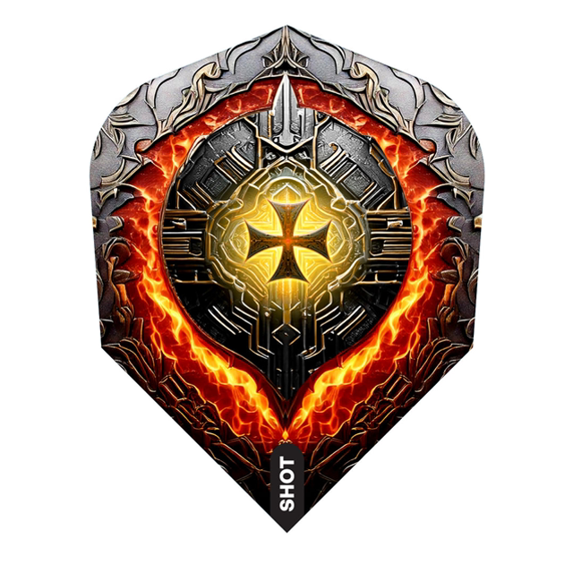Shot Darts are finished with distinctive dart flights which are hand drawn and crafted by our in-house design team. Standout graphics echo each individual dart theme perfectly. Available for sale separately, these small standard 100 micron flights provide maximum lift and stability of the dart when it is in flight. Pair these flights with the Future Knights Hachette dart set.