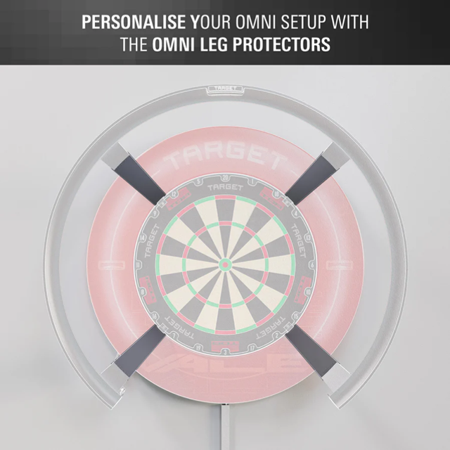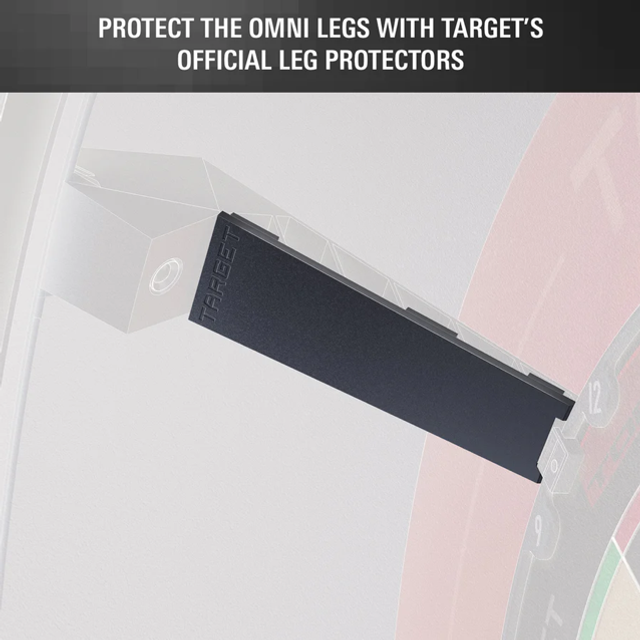 Official Target Darts Omni Leg Protectors designed exclusively for the Omni auto-scoring system. These precision-engineered protectors shield the legs of the 4 Omni arms from stray darts, preventing marks and impact damage while enhancing the look of your setup. Available in bold black and red, each pack includes 2 sets of 4 protectors (8 in total), allowing you to fully customise your display. Designed for effortless installation, the protectors simply clip onto the legs with no fixings required, offering quick setup and reliable protection